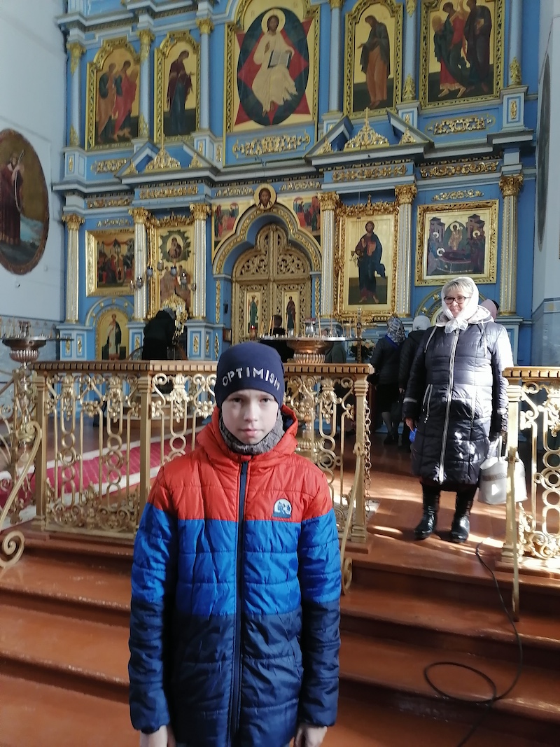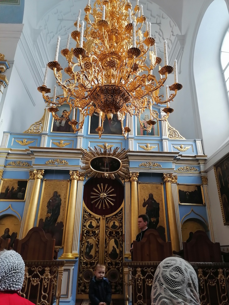 Приятно было общаться с юным паломником, который посещает школу псаломщиков и был в сопровождении мамы и бабушки. И все время просил купить то одну иконку, то вторую. Захотелось сфотографировать его на фоне замечательных паникадил.