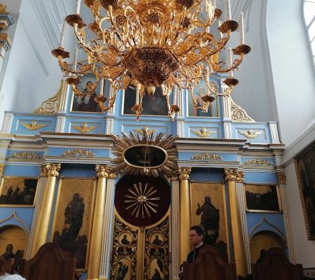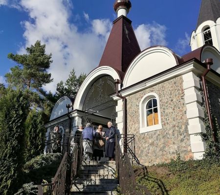 В Свято-Михайловском Сынковичском храме тихо, но слаженно помолились Акафистом «Всецарице» и отправились в Велико-Кракотский Зосимо- Савватиевский монастырь.