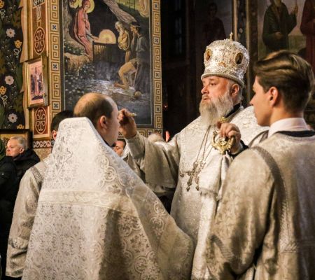 Богослужебные песнопения исполнил архиерейский хор кафедрального собора (регент — О.С. Полищук).