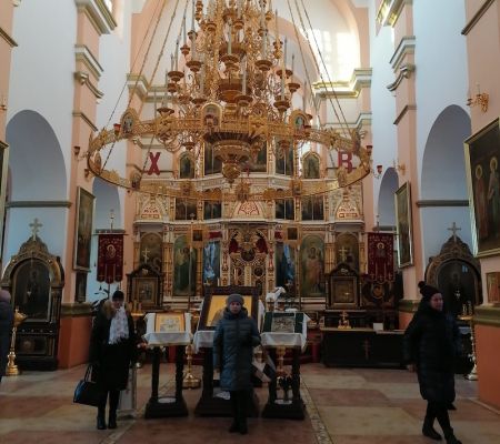 В Новогрудке паломники побывали в Свято-Никольском храме. С 1992 храм года является кафедральным собором Новогрудской епархии. Храм двупрестольный. Главный престол освящен во имя Святителя Николая Чудотворца, а придельный - во имя святой великомученицы царицы Александры. Первоначально, будучи католическим костёлом старинного монастыря францисканцев, храм стал православным в 1846 году. Цесаревич Николай Александрович подарил церкви ценную икону Святителя Николая и дарохранительницу, которые хранятся в алтаре. В соборе имеются икона XVIII века «Богоматерь Одигитрия» и иконостас второй половины XIX века.