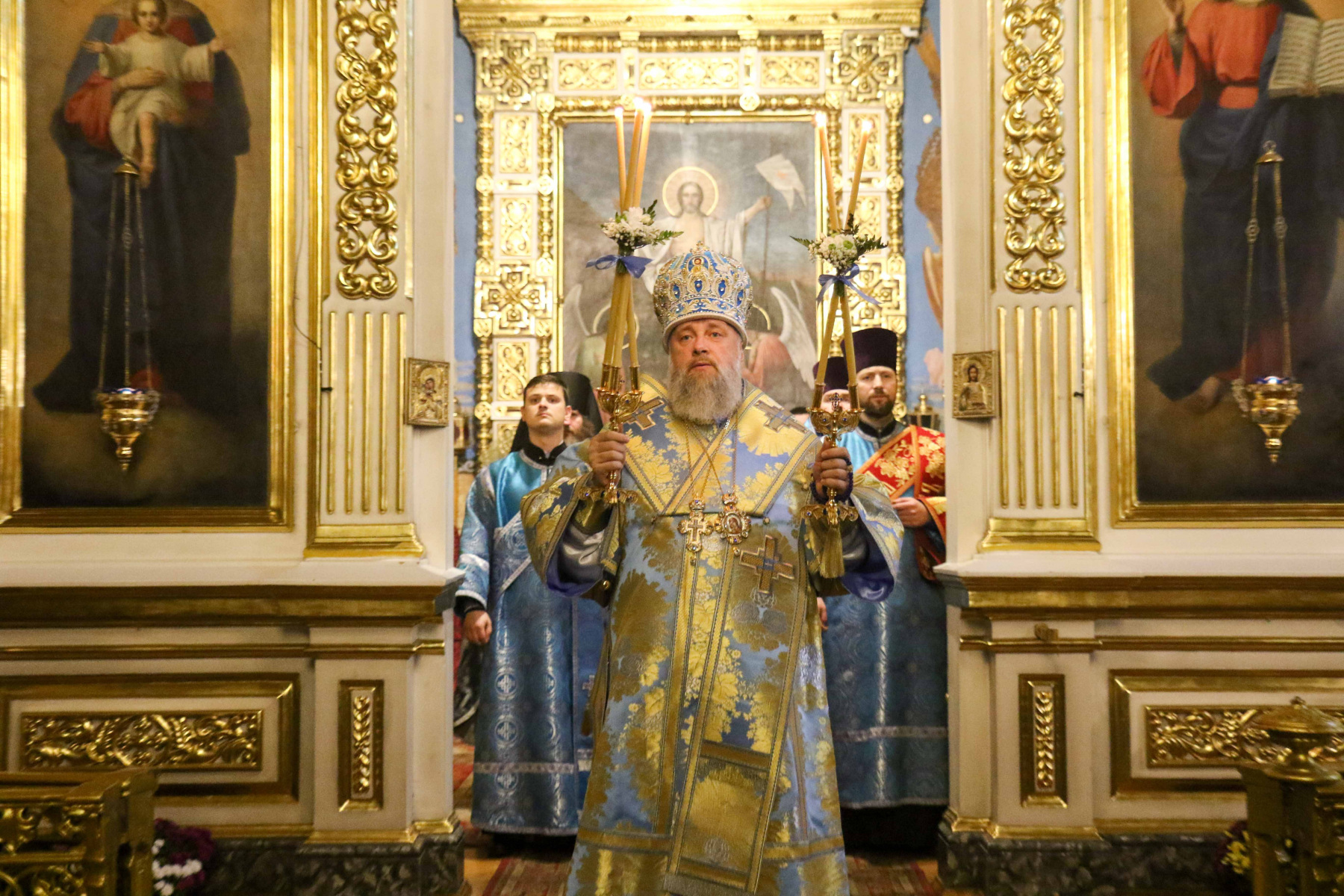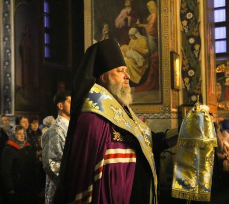 Его Высокопреосвященству сослужили клирики кафедрального собора: протоиерей Михаил Денисенко, ключарь кафедрального собора; протоиерей Сергий Чирун, иерей Игорь Лопыко, иерей Алексий Макаренко, иерей Сергий Мухин, иерей Андрей Ханцевич, иерей Павел Лупиш, временный клирик иеромонах Макарий (Черненко).