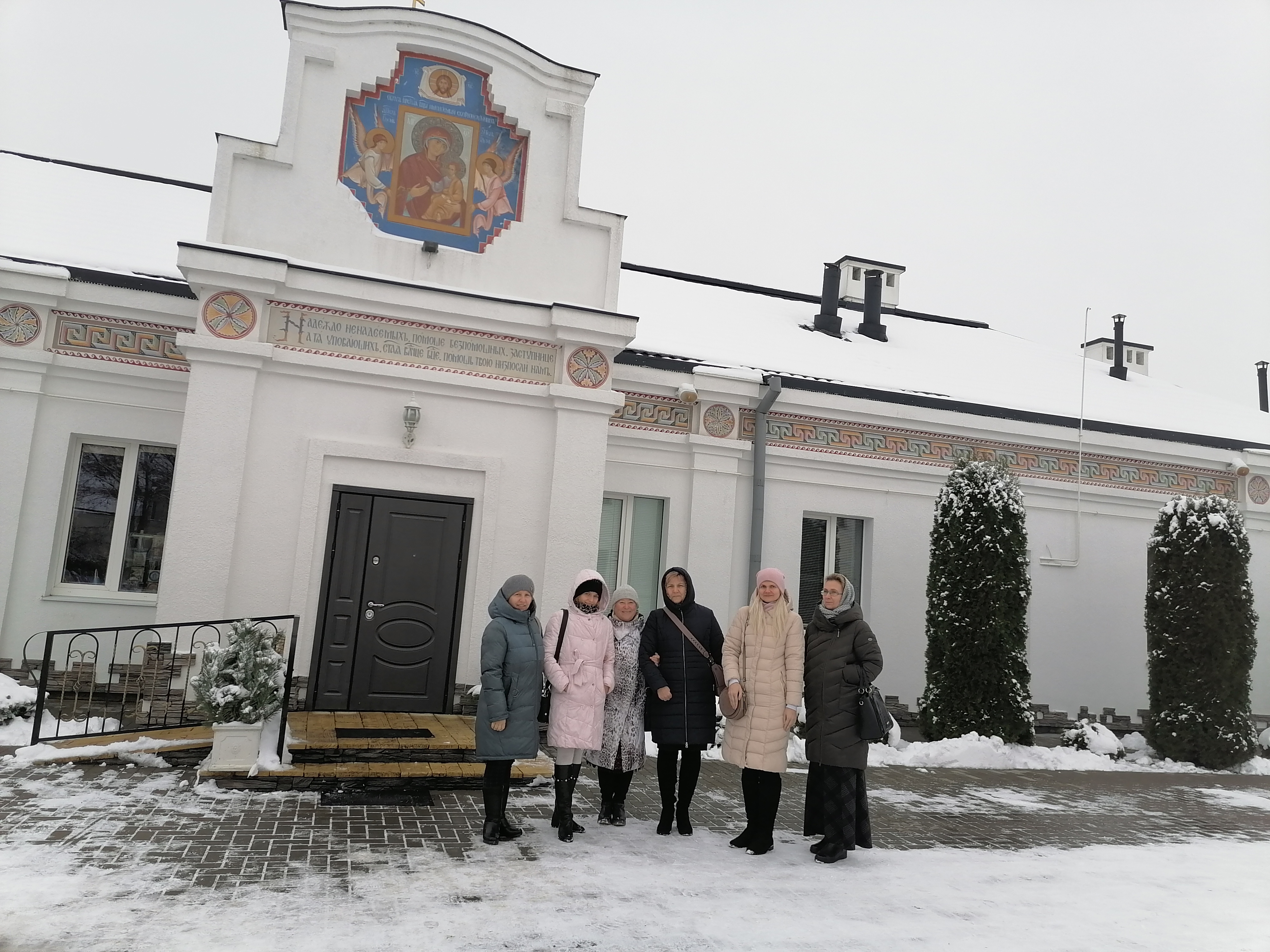 Началось паломничество с Божественной Литургии в домовой церкви Спасского монастыря Кобрина. Приехали заранее и смогли насладиться призывным благозвучием колокольного звона и видом пробуждающего в утреннем сумерке монастыря. Приложились к образу Богородицы «Скоропослушница». Престольный праздник в честь Образа состоялся в монастыре пятью днями ранее, 22 ноября.