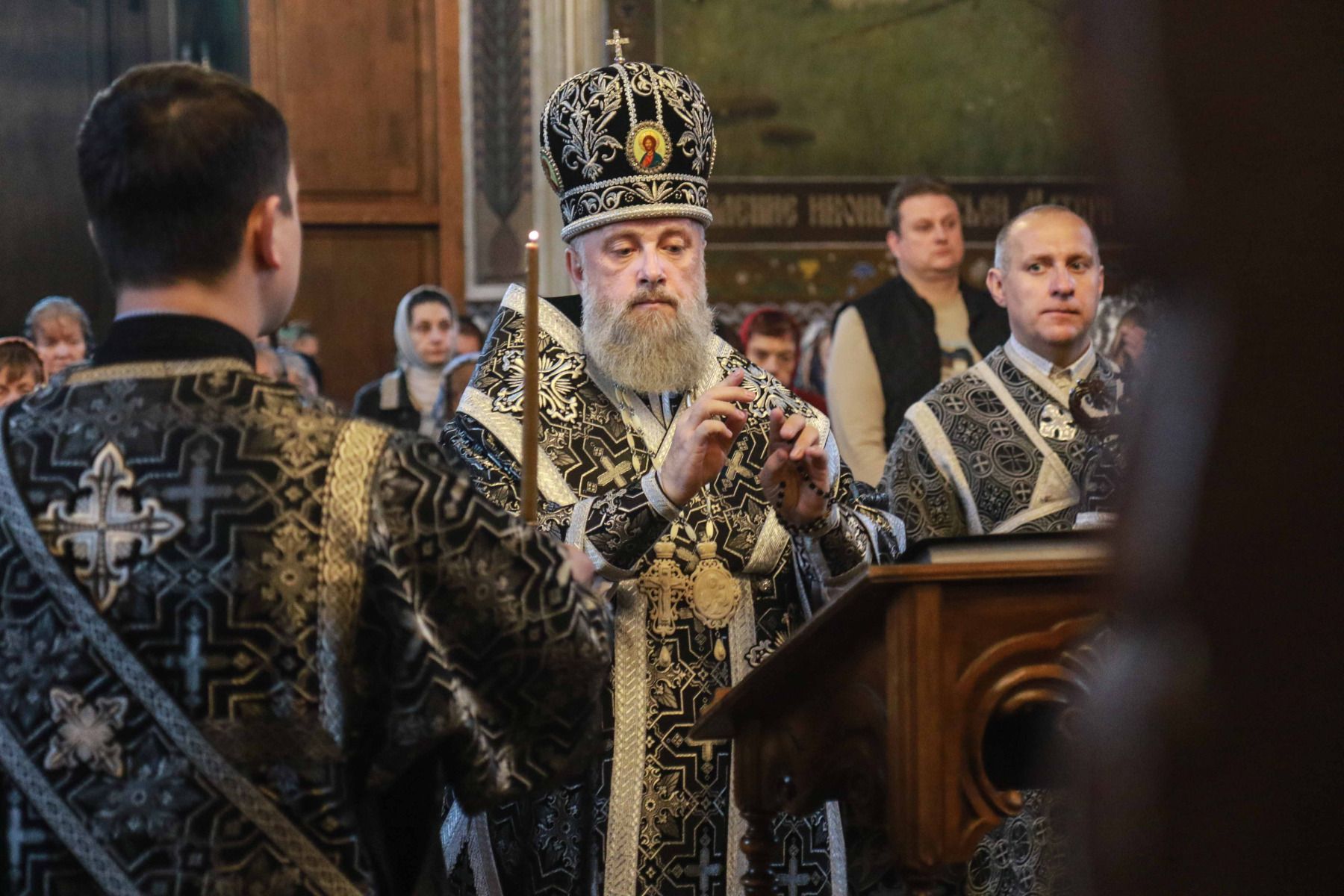 Его Высокопреосвященству сослужили клирики кафедрального собора: протоиерей Михаил Денисенко, ключарь кафедрального собора; протоиерей Сергий Чирун, иерей Игорь Лопыко, иерей Алексий Макаренко, иерей Се...