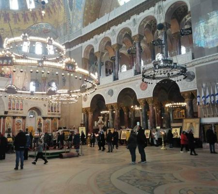 Во внутреннем дворике Оптинского подворья Санкт-Петербурга сидит, отлитый в бронзе, преподобный Макарий Оптинский. Перед ним шкатулочка с записочками письменных душеполезных поучений, адресованных Преподобным нам. Всякий раз, останавливаясь с паломниками в гостинице подворья, мы подходим к заветной шкатулочке, и наугад достаем маленький рулончик с наставлениями на пути духовной жизни. И каждый полагает при этом, что слова не случайно достались именно ему. «…Я только почитаю должным напомянуть вам, дабы все, что было доброе, творимое вами, проникнуто было смирением: молитва ли, пост ли, милостыня, прощение ближним и прочее, все это делайте во славу Божию и со смирением». Это от Преподобного досталось мне. И как тут сомневаться. Ведь именно в дни Великого поста я это и обрела в записке. Пользуясь возможностью, паломники были и на вечернем богослужении и на ранней Литургии с Покровском храме обители. Храм отличается необыкновенным внутренним убранством. Богатая роспись, огромный купол, множество святынь.