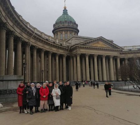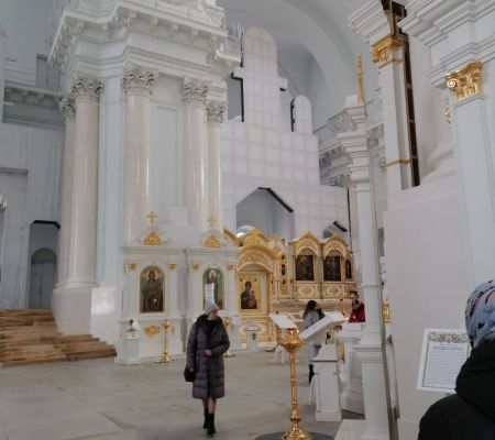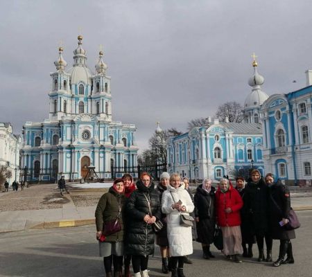 Посетили и Новодевичий монастырь, и место, на котором первоначально он должен был, по решению Императрицы Елизаветы Петровны, быть основан. Теперь это Смольный Собор. Величественный, с беломраморными колоннами, завершающимися коринфскими капителями – ярчайший образец Елизаветинского барокко, созданный Бартоломео Растрелли.