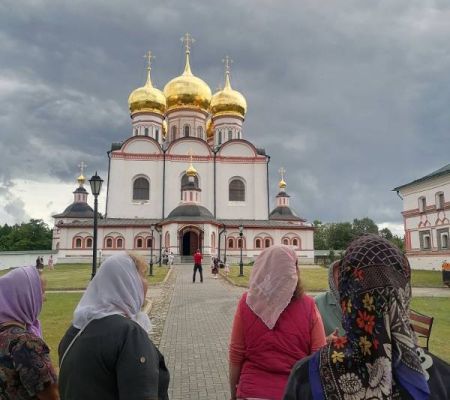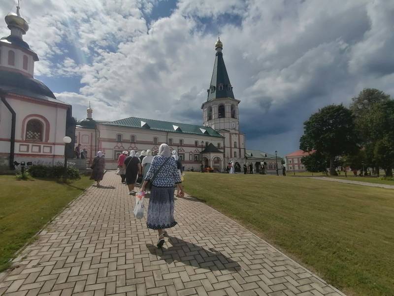Ночной переезд – Брест-Валдай, и мы в Валда́йском И́верском Богоро́дицком Святоозе́рском мужском монастыре на Сельвицком острове Валдайского озера в Валдайском районе Новгородской области, в 10 км от города Валдая. Дорога к монастырю проходит по дамбе. Добраться до острова, где находится Иверский монастырь, можно на и теплоходе. От пристани Валдая к монастырю отправляются паромы. Можно доехать и на такси из Валдая. Мы добирались автомобильным транспортом: первый остров, Рябиновый, соединен с материком автомобильным мостом; с его северной оконечности через узкий пролив есть мост на Сельвицкий остров, где и находится монастырь.