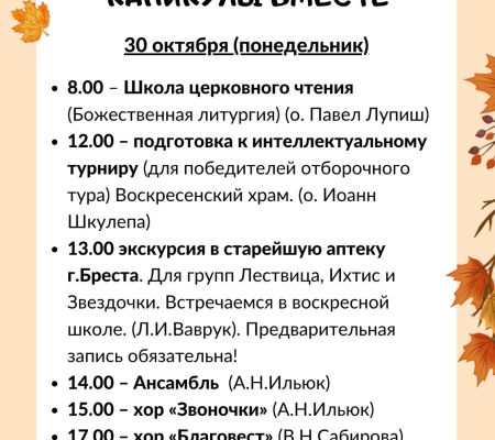 РАСПИСАНИЕ БОГОСЛУЖЕНИЙ