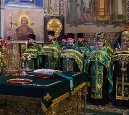Богослужебные песнопения исполнил архиерейский хор кафедрального собора.