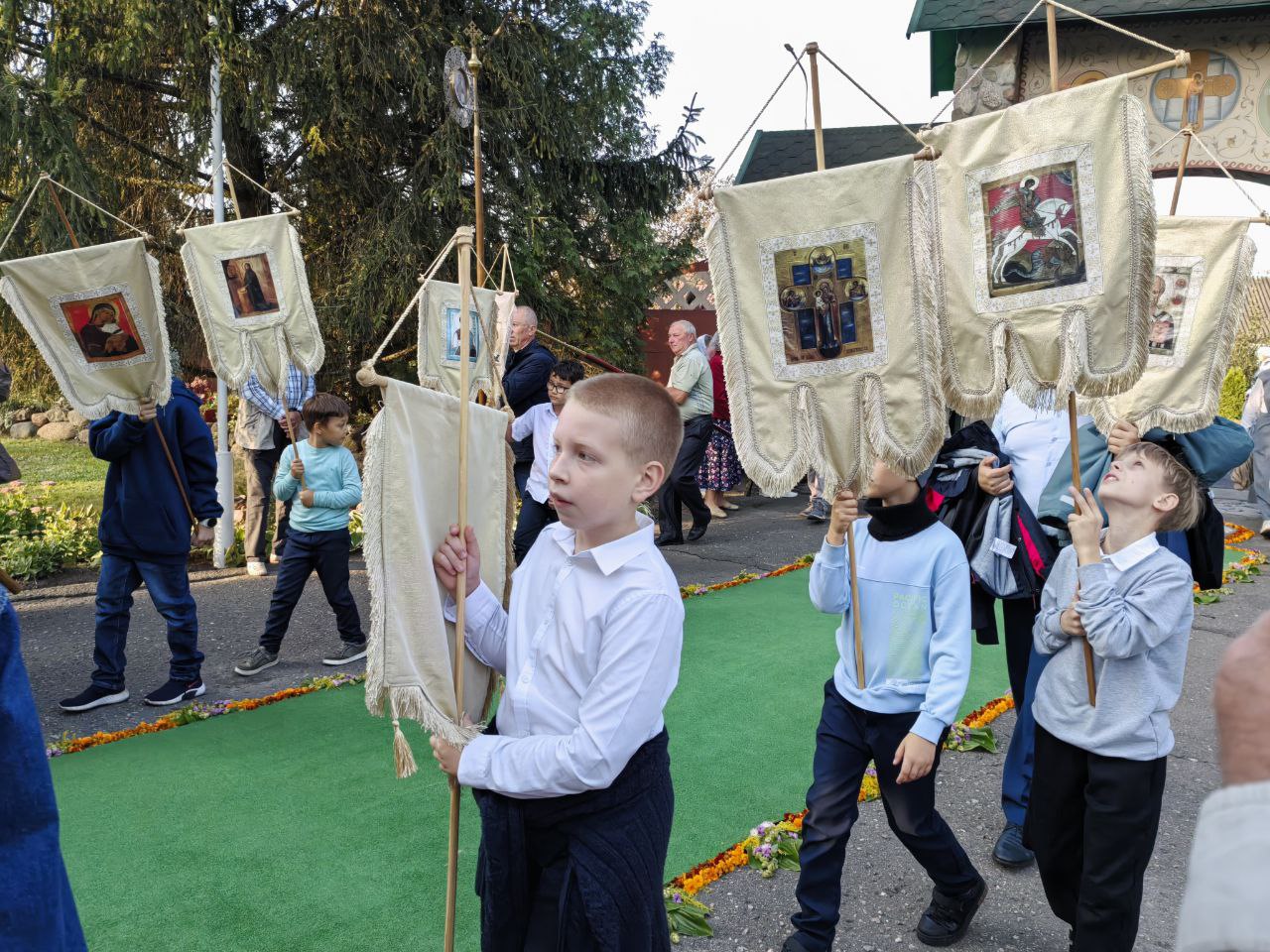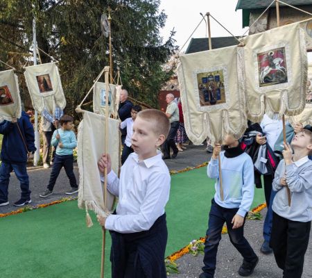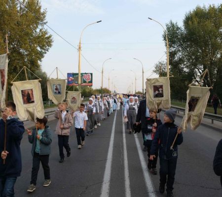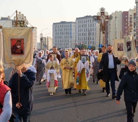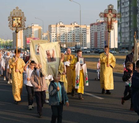 По уже устоявшейся традиции, рано утром ребята встретились у старого дуба во дворе кафедрального собора, чтобы возглавить Крестный ход несением хоругвей. Эта миссия безусловно ответственная, в то же самое время, духовно-вдохновляющая, ведь на хоругвях изображены святые, которые посредством нашего участия возглавляют молитвенное шествие. Несомненно, участвуя в общем духовном деле, наши юные воспитанники ощущают, как шествуя со знаменем Креста и святых, они заявляют о своей твердой вере и уповании на помощь Божью. Для ребят - Крестный ход в этот день является и небольшим испытанием, ведь путь, который предстоит пройти - немалый. Путь шествия имеет символическое значение для Брестчан, он пролегает от стен кафедрального собора преподобного Симеона Столпника до места мученической кончины святого Афанасия Брестского.