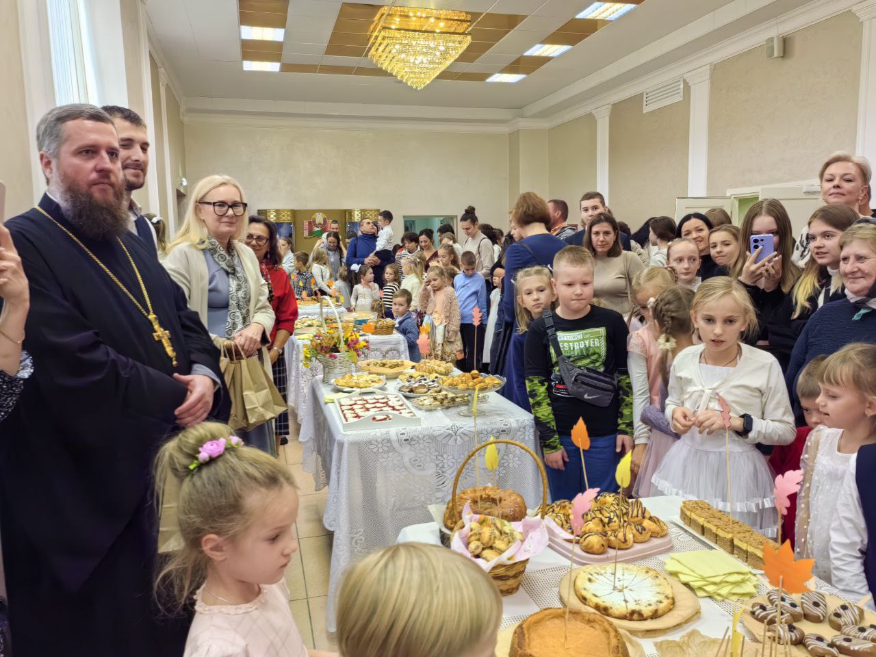 В этом году концерт под названием "Мамин Праздник" пришелся на 20 октября. В концерте принимали участие старший и младший хоры "Благовест" и "Звоночки", инструментальный ансамбль, театральная студия "Ангел" и танцевальная студия "Серафима". Дети Воскресной школы подготовили ряд проникновенных стихов о высоком служении матери. Особенно запомнился стих "Мама-Храм", где мама такая хрупкая, но в тоже время мама такая сильная, она наша опора - мама-храм! Кроме того, не оставил зрителей равнодушными вид искусства, говорящий без слов - трепетный танец дочек и мам. Детки младшего хора "Звоночки" исполнили песню "Мама, мама, мамачка, я цябе люблю! Песеньку прыгожую я цябе спяю!" и как всегда умилили своей непосредственностью, чистотой и искренней любовью. Мамы Воскресной школы тоже подготовили номер на родном белорусском языке о любви к детям, Родине и своей семье. Концерт завершился вкусной нотой - сладким столом в фойе центра. Сладкий стол кулинарных шедевров от наших мам дети ждут с нетерпением, каких только деликатесов там нет!