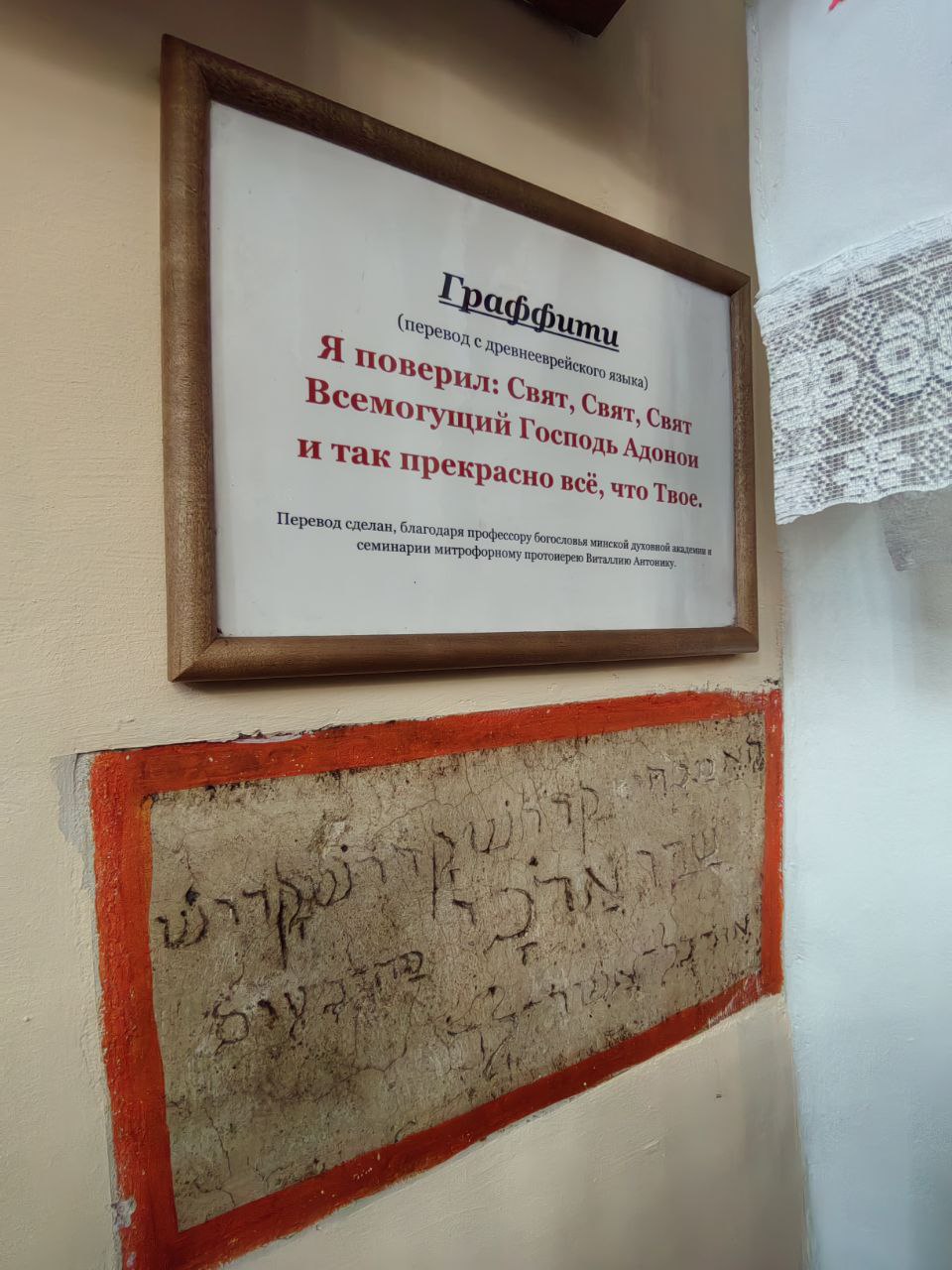 Далее наш путь лежал в агрогородок Сынковичи, где перед нами предстала грандиозная по масштабу, совершенно не похожая на наши белорусские храмы, древняя церковь-крепость, построенная еще при князе Витовте. Историю храма нам поведали на родном белорусском языке. Мы впервые увидели уникальные граффити на древнем языке, нанесенные на стены храма нашими предками. Также поклонились чудотворному образу Сынковичской Божией Матери Всецарица. Люди из многих уголков света спешат помолиться у этой святыни, о чем свидетельствуют множественные украшения, оставленные в благодарность за благодатную помощь.